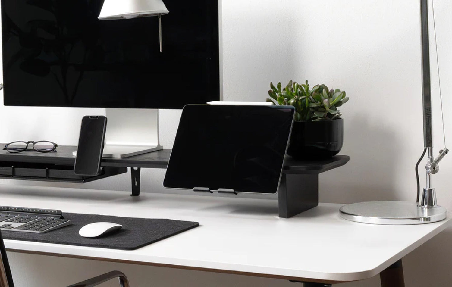 Sei es, um Notizen zu erstellen, zu designen, zu präsentieren oder als weiterer Bildschirm: Ein Tablet kann am Arbeitsplatz diverse Funktionen übernehmen. Um Dein Tablet perfekt in Deiner Schreibtischorganisation einzubringen, haben wir den Tablethalter für das Setup Cockpit entwickelt.