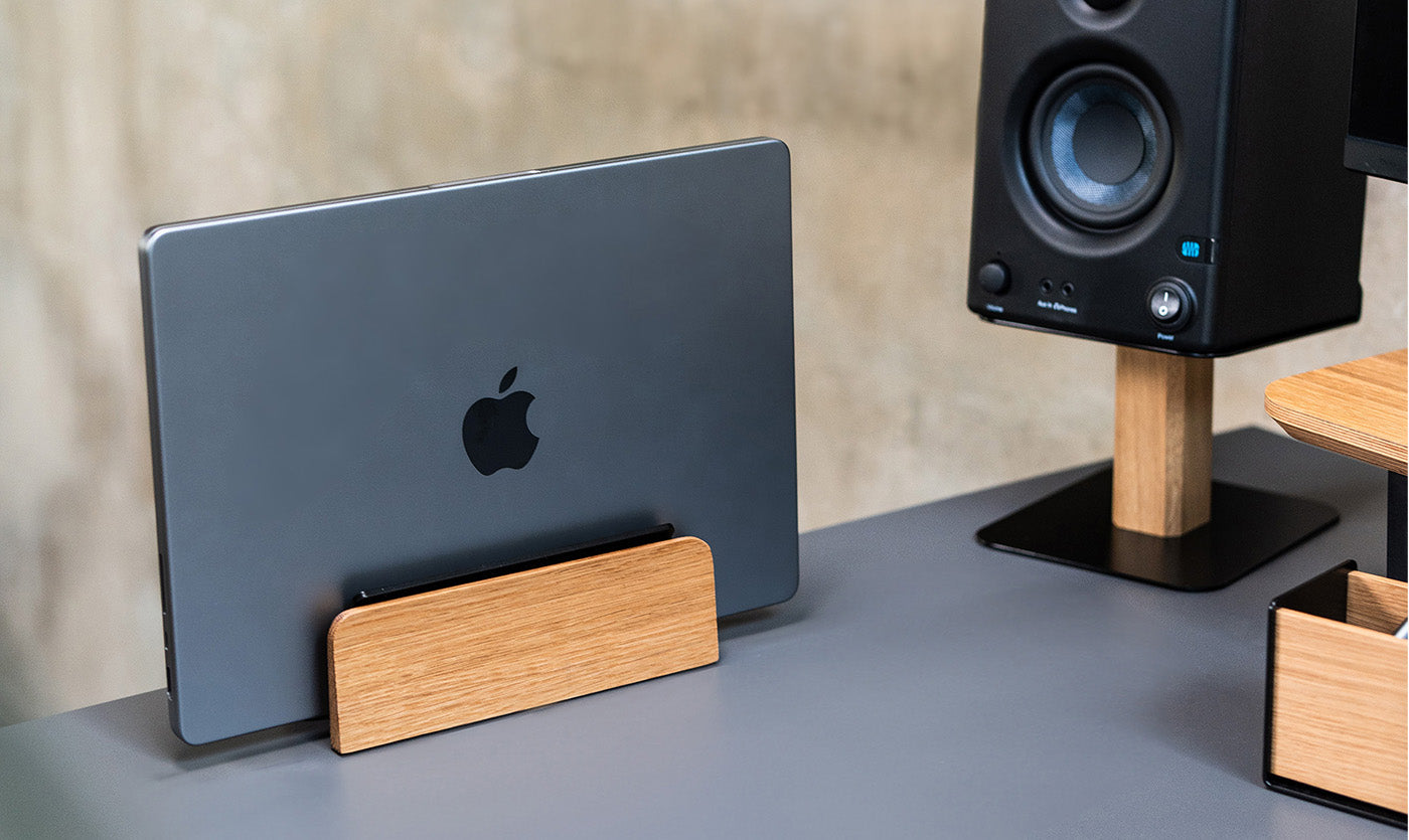 Die Monitorerhöhung hebt den Bildschirm auf eine ergonomische Höhe an.