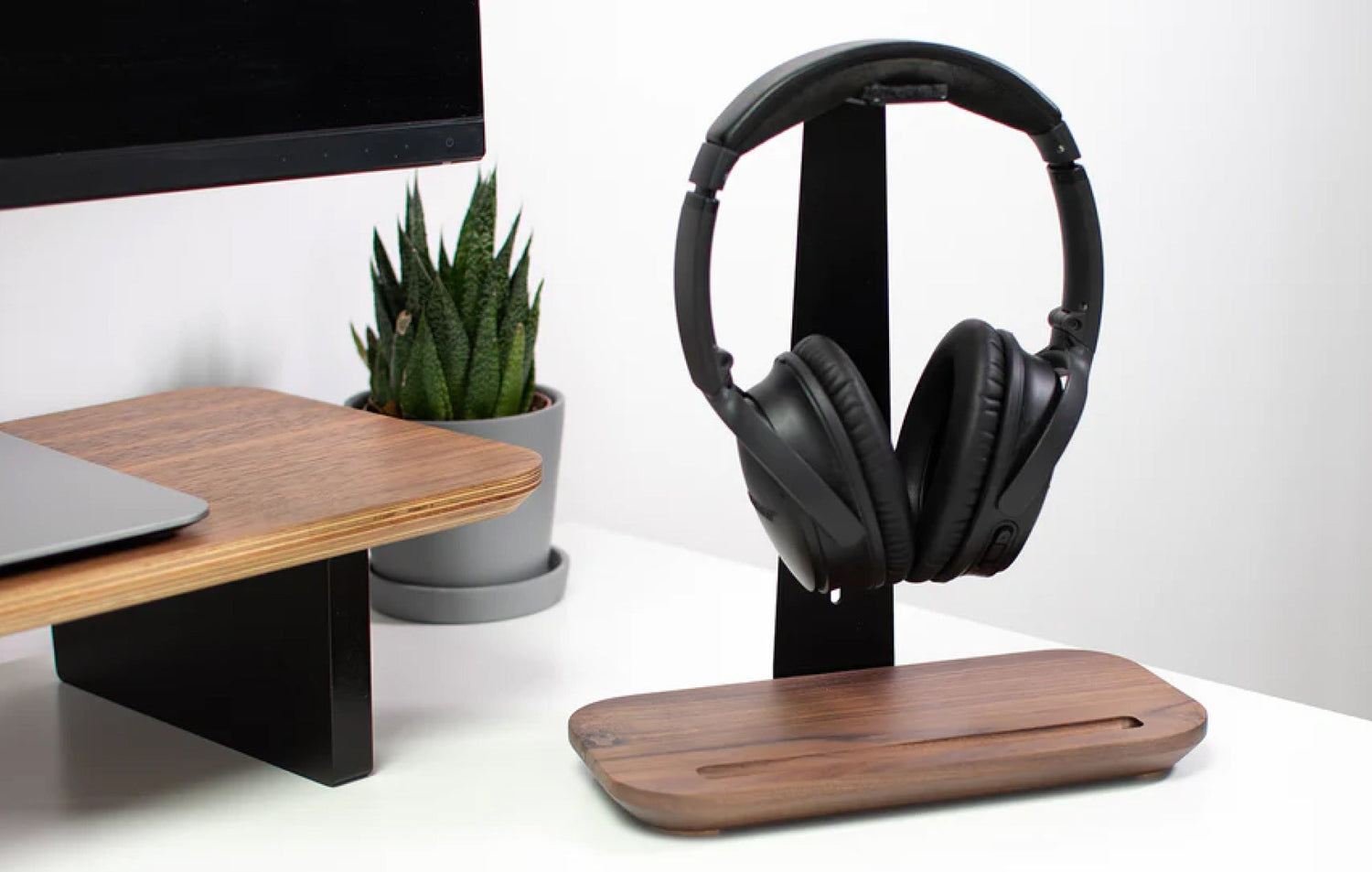 With the Headphone Stand, exactly such a place is created and the desk is upgraded at the same time.