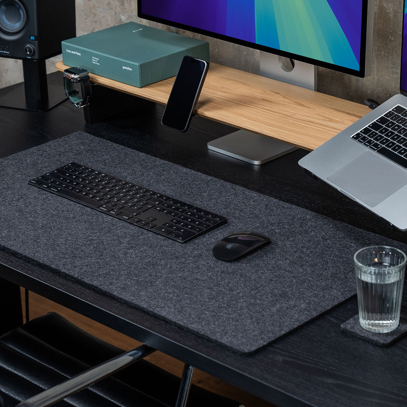 In addition to the Setup Cockpit monitor stand, our desk pads complete the desk setup, providing a comfortable surface for the modern and ergonomic desk.
