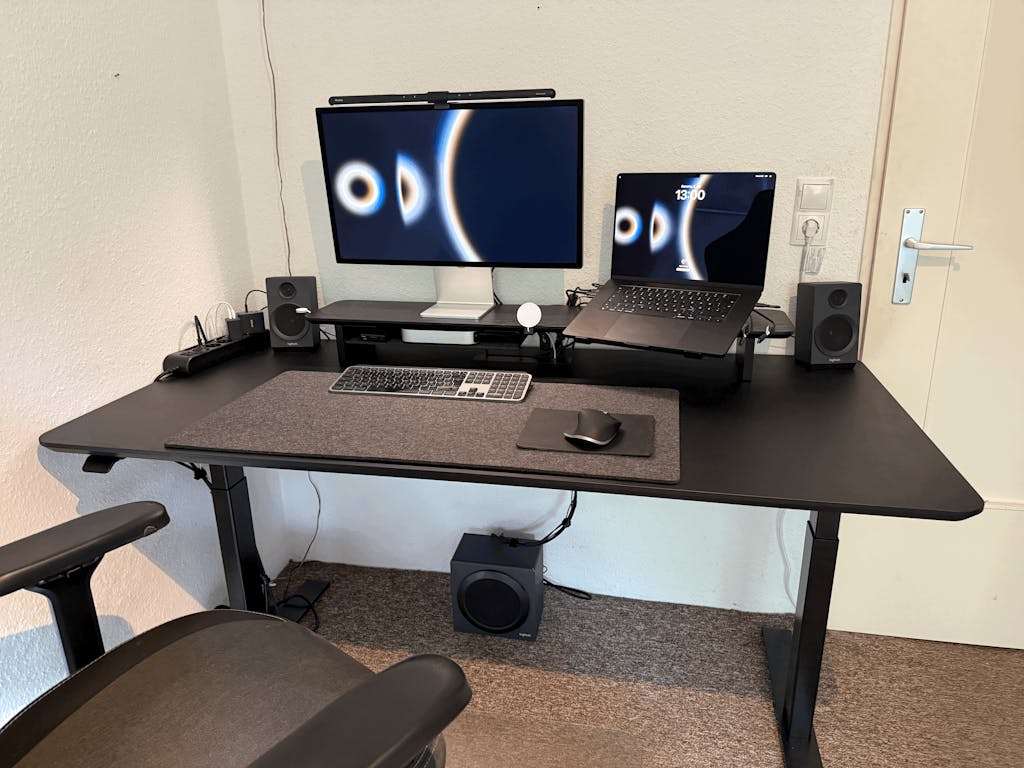 The height-adjustable desk frame by premium manufacturer Linak® from Denmark is fast, quiet and powerful thanks to its dual-motor-technology. It can be controlled to different heights or preset positions the classic way via the control panel or via app. The control panel can be flexibly mounted on the left or right to suit your setup.