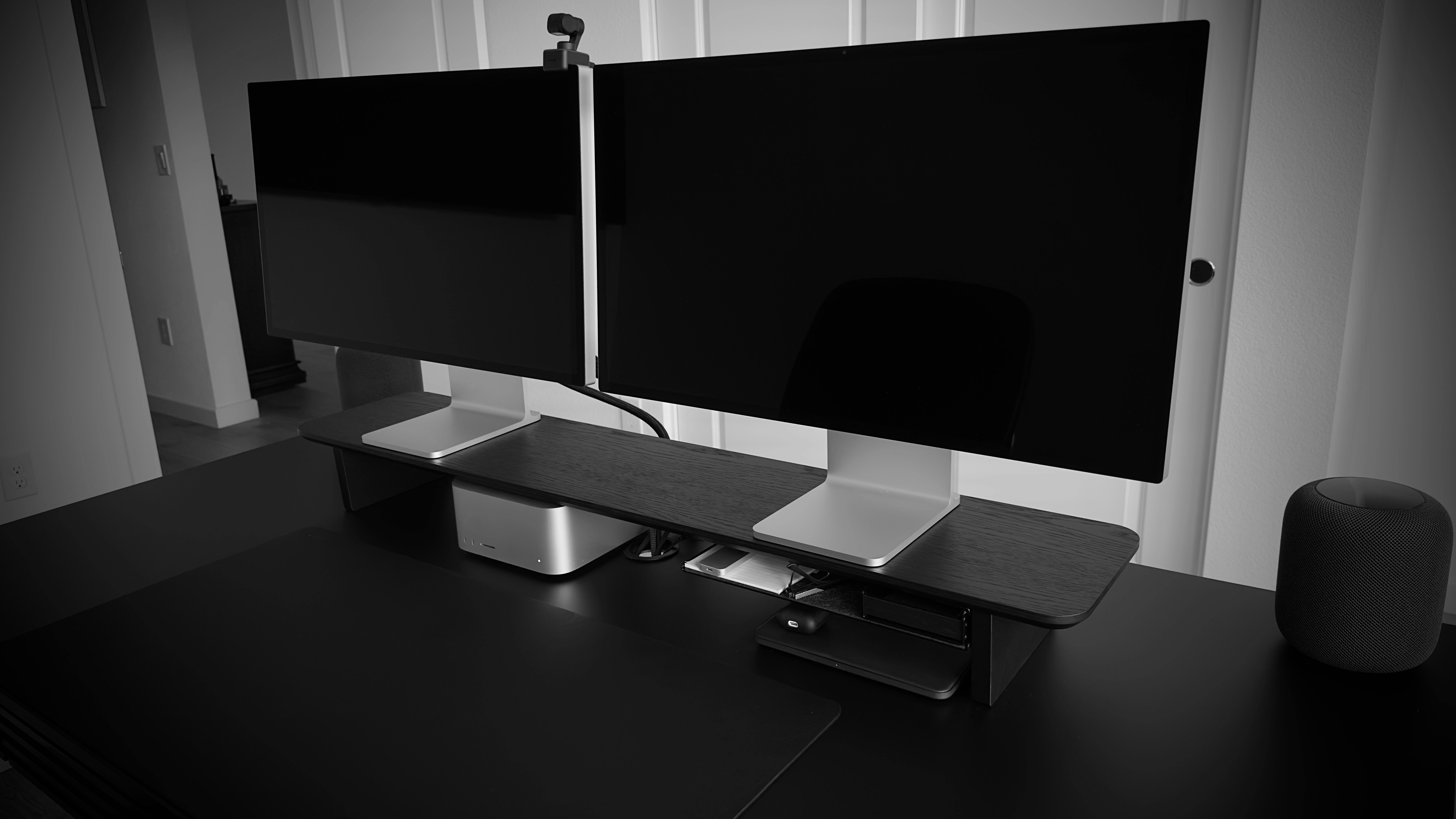 The BALOLO® Setup Cockpit is a modern monitor stand, elevating up to two screens to an ergonomic height and creating the perfect combination out of functionality and aesthetics. Manufactured in a minimalist design, the desk shelf immediately becomes the centerpiece of every desk setup and takes structure and organization to a new level.