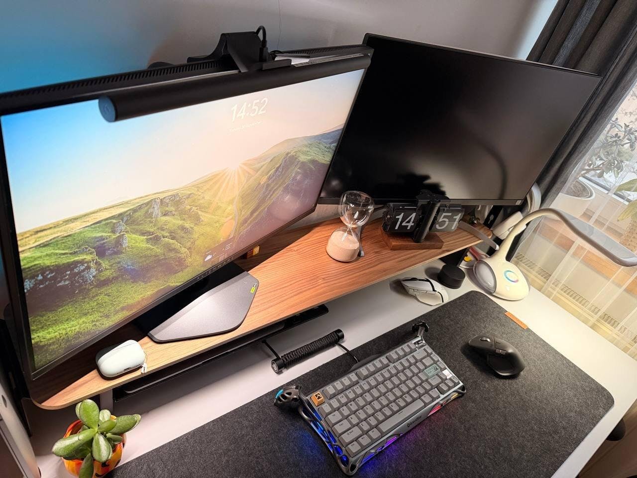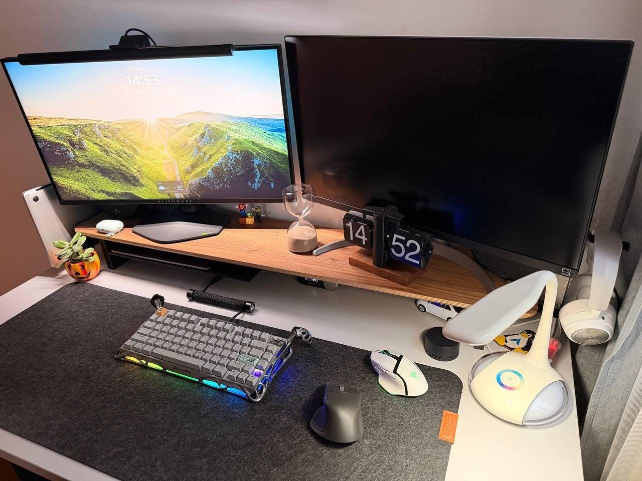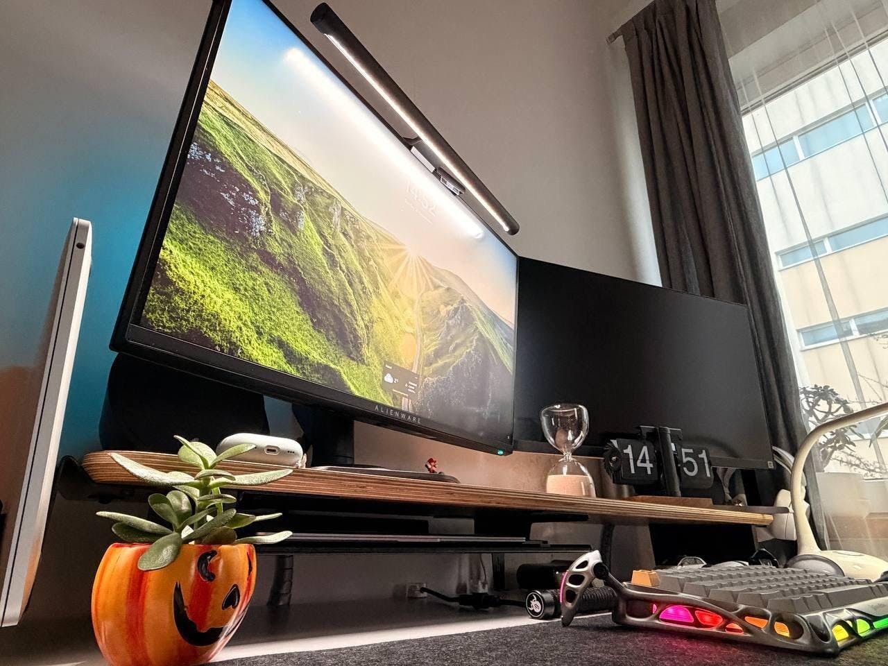 The BALOLO® Setup Cockpit is a modern monitor stand, elevating up to two screens to an ergonomic height and creating the perfect combination out of functionality and aesthetics. Manufactured in a minimalist design, the desk shelf immediately becomes the centerpiece of every desk setup and takes structure and organization to a new level.