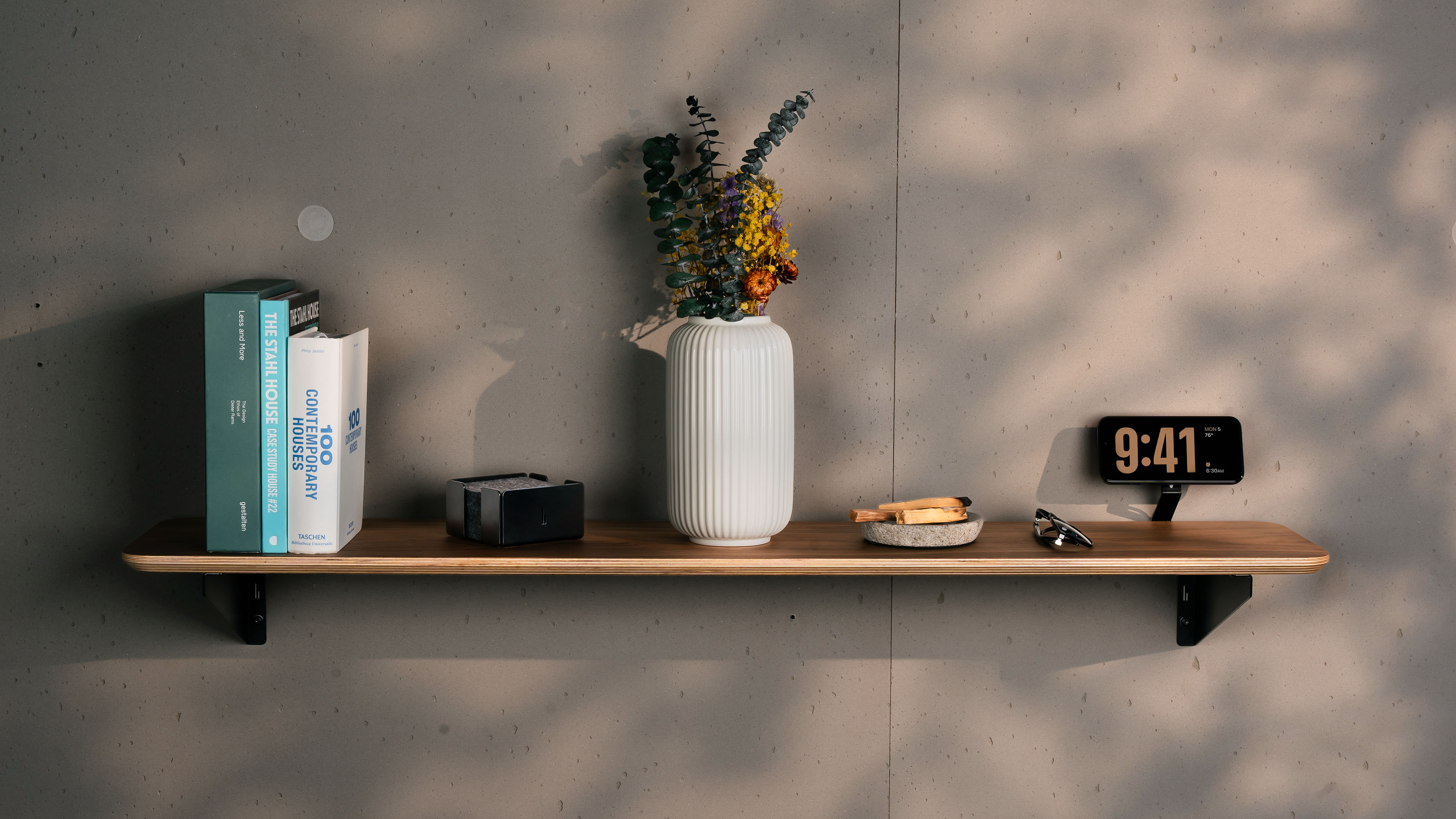 The functionality of the Wall Cockpit is perfected by a range of modular accessories. These can be individually attached to the mounting points of the patent pending mounting grid on the underside. This allows not only everyday objects such as books, keys or decorative stands to be optimally arranged. Even electronic devices such as the iPhone or Apple Watch can be perfectly integrated into the room.