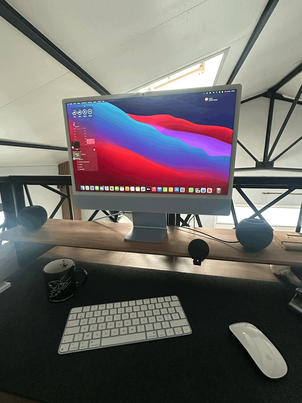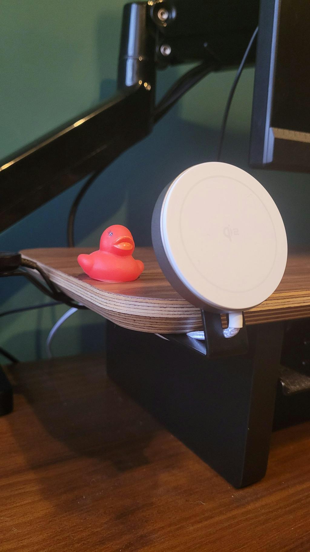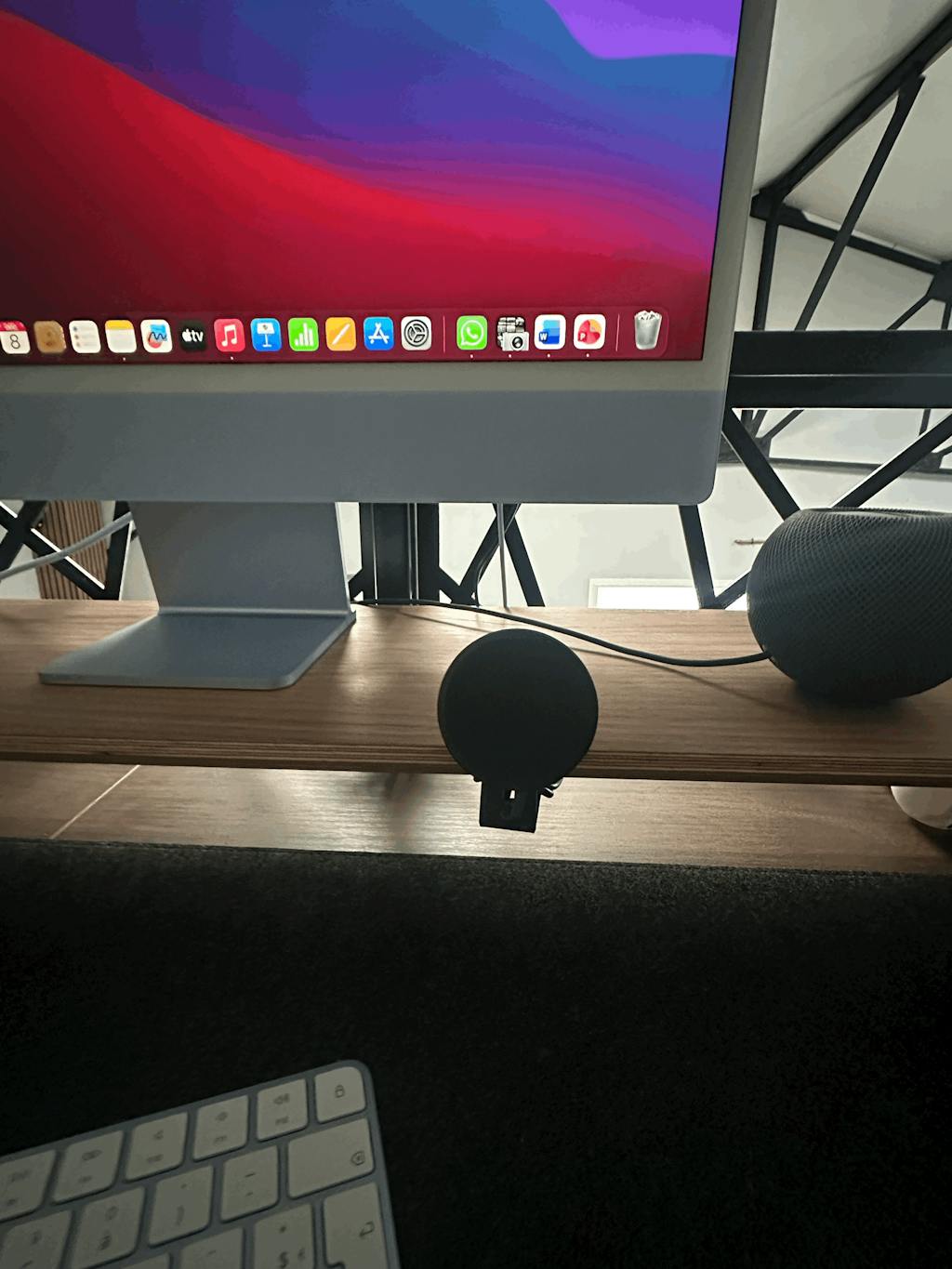Die MagSafe Halterung für das Setup Cockpit bringt das iPhone während des kabellosen Ladens auf eine nutzerfreundliche Höhe, sodass es sich angenehm bedienen lässt. Die Halterung wird hierfür an der Monitorerhöhung angebracht und der Apple MagSafe Charger mit dem beiliegenden 3M Klebepad an der Auflagefläche befestigt.